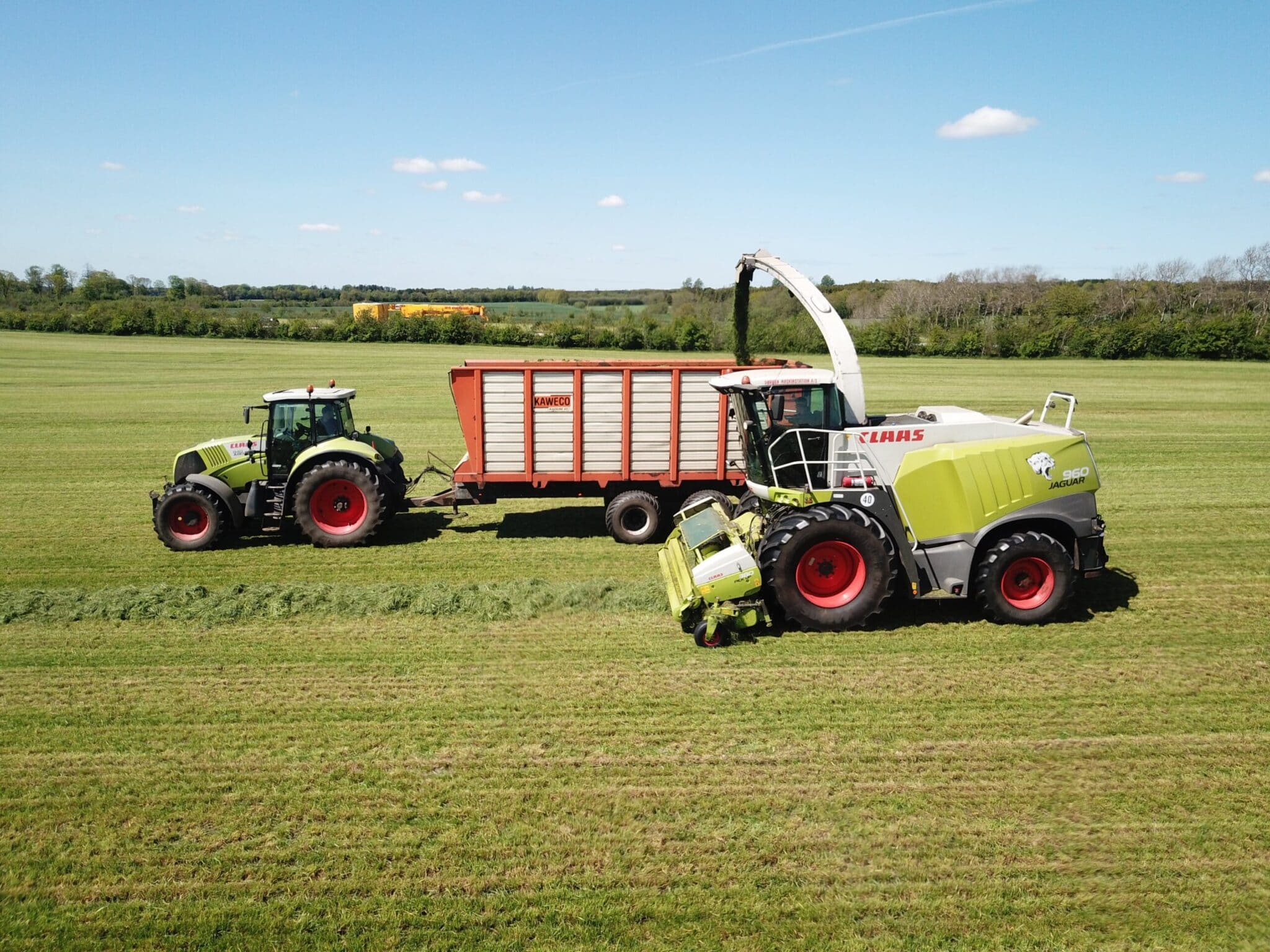- Finsnitning udføres med Claas Jaguar 960 med 3.8 m. pick-up, 14 fod helsædskærebord og 10-rækket majsbord.